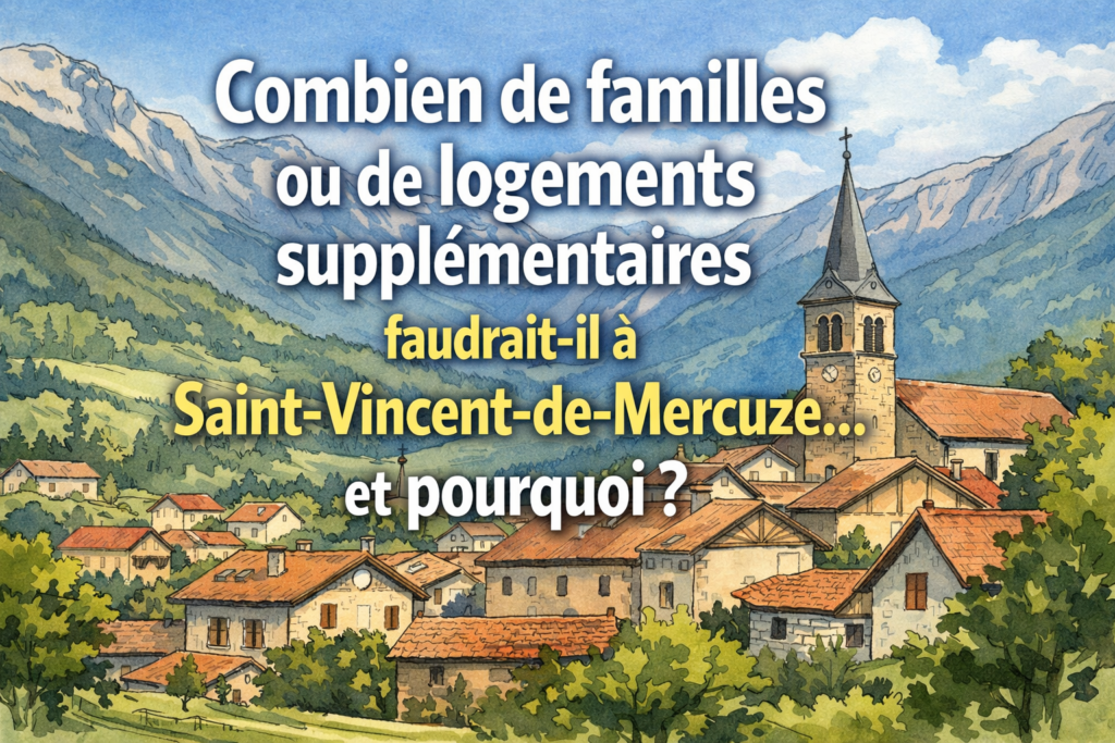 Pour maintenir ses services, son école et sa vitalité, Saint-Vincent-de-Mercuze n’a pas besoin de croître fortement, mais de se renouveler. L’accueil de 20 à 30 familles, soit 30 à 50 logements sur une quinzaine d’années, constitue un ordre de grandeur réaliste.